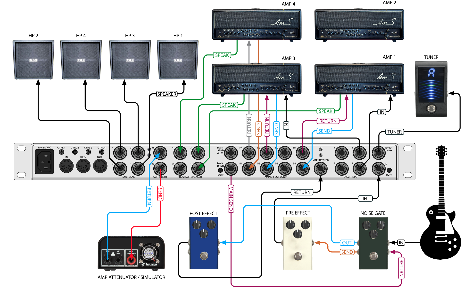4 Insert type send / return pour boucle d'effets des amplis