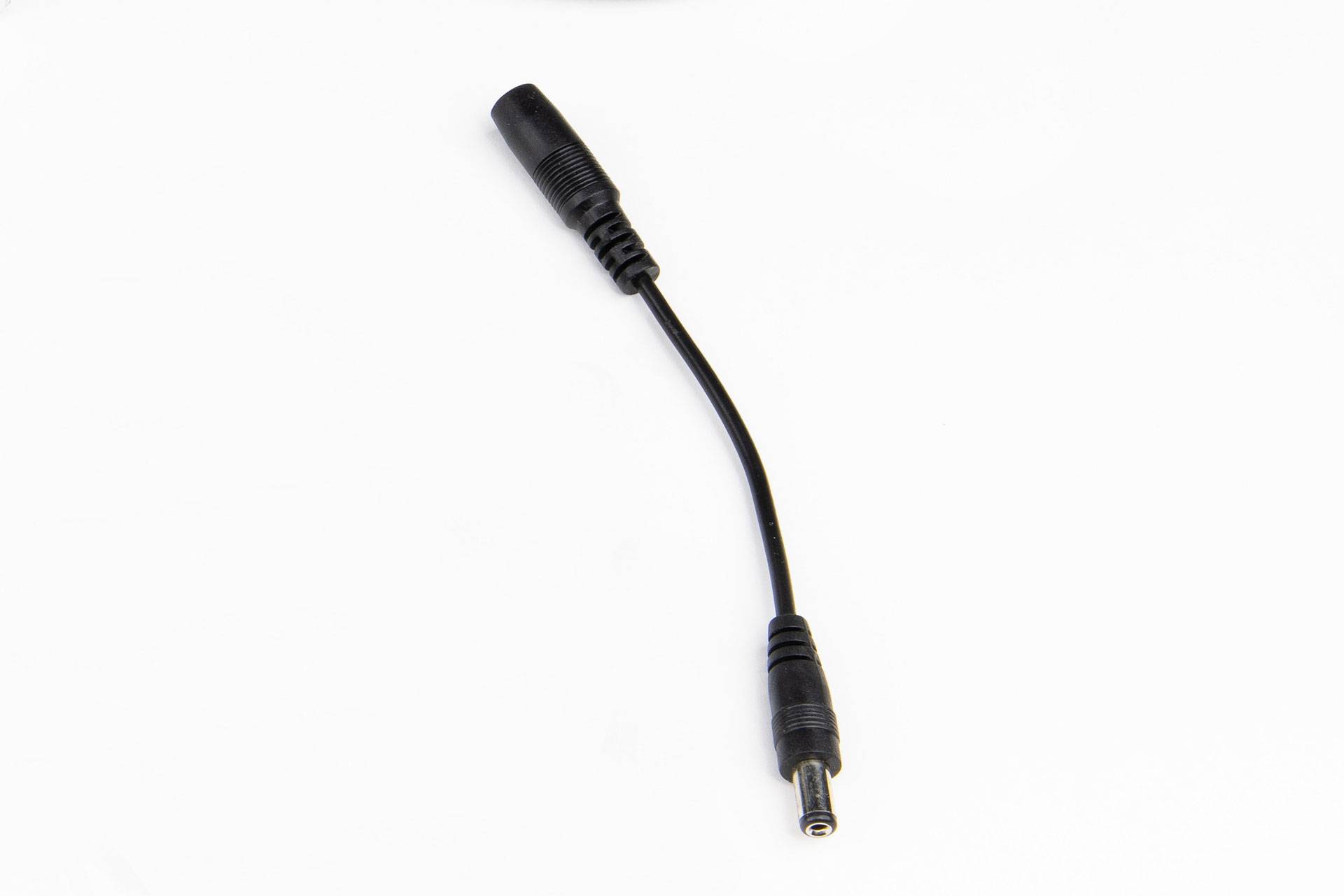 Cordon inverseur type "jack DC" avec connecteur coaxial de Ø 5.5x2.1 mâle et femelle droit d'une longueur de 15.5 cm.